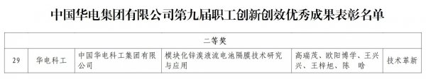 波胆官方网站-华电科工储能分公司青年创新创效成果荣获华电集团公司表彰